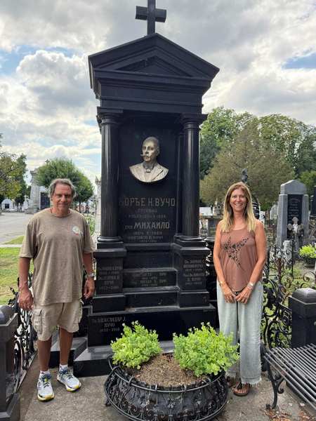 Следећи упутства П. Вуча, лако смо нашли велику и елегантну гробницу породице Вучо. Сама монументалност породичне гробнице сведочи о богатству и престижу породице Вучо у Београду. На надгробном споменику доминира биста Ђорђа Вуча, оснивача породичне фирме. Уз њега сахрањена је и његова супруга Ифигенија Барбери, као и њихова деца и унуци. На споменику, скоро испред сваког уписаног имена уочљива је скраћеница академске титуле Dr, што показује да је породица Вучо улагала своје богатство не само у економско ширење својих послова већ и у академско образовање своје деце. Овде, пред породичном гробницом где се завршава нечији животни пут, за Уругвајце, потомке породице Вучо, након живог и конкретног сусрета са прецима, почиње једна нова етапа у породичном животу .